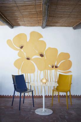 Philippe Starck nous emmène vers de nouveaux sommets avec la chaise H.H.H. - HER HIGHEST HIGHNESS. Avec une élégance et une puissance graphique inégalées, H.H. définit l’essence même de l’être humain qui interagit avec elle, l’obligeant à prendre position. Un objet qui va au-delà du simple concept de siège, en transformant chaque instant passé sur celui-ci en un véritable moment de royauté. La structure est en matériaux recyclés et l’assise est disponible en différentes finitions : cuir recyclé à tannage végétal, dans les coloris noir et cuir, cuir texturé éco-responsable partiellement fabriqué à partir de matériaux recyclés et de sources renouvelables, dans les coloris noir et tabac. Une finition ultra brillante est également disponible dans les coloris blanc, noir, bordeaux, rouille, jaune moutarde, bleu et vert. H.H.H. ne se limite pas à remplir simplement la fonction pratique d’une chaise. Elle s’impose comment une icône de style qui enchante et inspire tous ceux qui s’en approchent grâce à l’édition Kartell x Liberty. Revêtue de six tissus Liberty aux imprimés floraux éclatants, elle est ornée de trois dessins tirés des archives de la marque historique anglaise, déclinés dans cinq couleurs créées spécialement pour Kartell. Fidèle à son rôle de pionnier dans la recherche de nouvelles formes d’innovation technologique, Kartell a également décidé de faire un pas de plus dans cette direction en expérimentant une nouvelle technique de graphic impression. Celle-ci permet d’obtenir quatre motifs floraux et géométriques aux couleurs variées au moyen d’une impression hautement technologique.