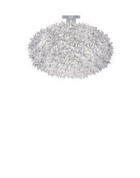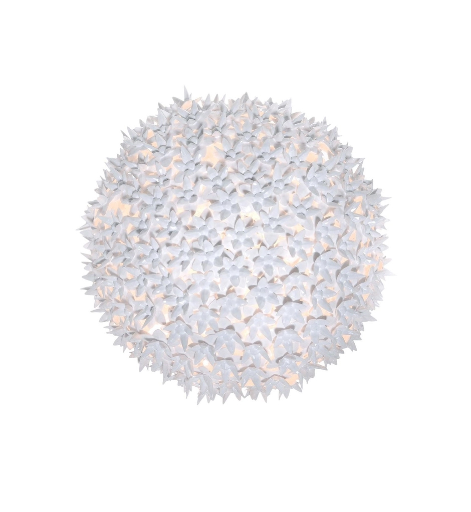 Kartell Design. Ferruccio Laviani à partir de 792 € Dimensions : Ø 28/53/80 x h 19/.../51,5 cm Bloom de Kartell se compose d'un squelette tubulaire entièrement recouvert d'une structure formée de petites fleurs à double corolle en polycarbonate transparent. Le résultat est une lampe produite industriellement mais avec les formes et la complexité stylistique d'une pièce unique, artisanale. Des ampoules placées à l'intérieur de la structure diffusent, à travers les pétales, le faisceau lumineux qui se réfléchit sur les surfaces facettées des fleurs en donnant naissant à mille reflets. MATÉRIAU Technopolymère thermoplastique transparent ou teinté dans la masse lampe plafonnier
