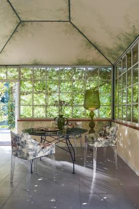 Des imprimés de caractère, capables de donner une nouvelle vie à un produit pour de nouvelles solutions d'ameublement, amplifiant la possibilité de personnaliser les espaces. Les tissus Rubelli Quatrefoil® dessinés par Luke Edward Hall donnent de nouvelles finitions inattendues aux chaises MADAME de Philippe Starck grâce à des motifs originaux aux empreintes géométriques imbriquées
