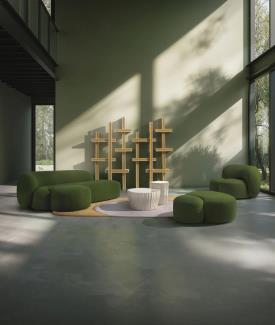 La nouvelle collection d’assises rembourrées AALAND, imaginée par Patricia Urquiola puise son inspiration dans les images des archipels, où les îles rapprochées créent un sentiment de cohésion dans un espace fluide. Ce concept original imprègne chaque élément de la collection. AALAND défie les règles classiques du rembourrage en misant sur des formes libres, des volumes inattendus et multifonctions, qui vont bien au-delà du style traditionnel des assises. La collection propose de nombreux petits sièges qui, ensemble, composent un paysage parsemé d’occasions de socialisation. Poufs grands et petits sont présentés comme des îlots qui, grâce à un langage organique, se connectent et se complètent les uns les autres. Aucune assise rembourrée n’est plus un élément isolé, toutes contribuent désormais à un ensemble cohérent. Les pièces rembourrées de la collection, conçues individuellement dans des dimensions plus petites, sont facilement déplaçables et organisables selon les besoins. Parés d’un motif unique, trois tapis AALAND de différentes dimensions viennent compléter ce paysage. Ce motif représente deux formes organiques arrondies, chacune avec un fond différent, placées l’une près de l’autre et reliées par un signe graphique, tel une suture. Cela crée un effet visuel percutant, qui vient sublimer l’esthétique et la vivacité de l’espace environnant.