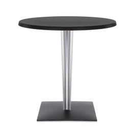 La série des tables TopTop se distingue par son piètement transparent ou non, rond ou carré à facettes, renforcée par une âme en métal.