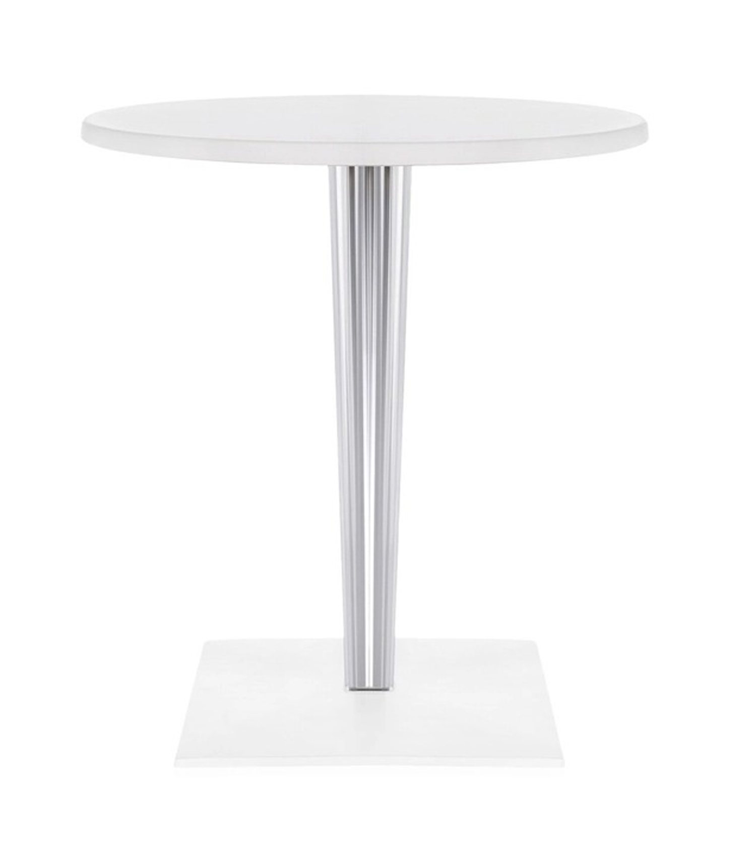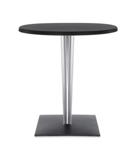 La série des tables TopTop se distingue par son piètement transparent ou non, rond ou carré à facettes, renforcée par une âme en métal.