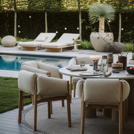 L’idée qui sous-tend la collection BAND est la décomposition de la structure. Un objet conçu comme un assemblage de pièces. La conception du fauteuil défie intentionnellement les lignes sophistiquées et classiques de la conception de meubles et devient un programme conceptuel, avec des caractéristiques schématiques. Une structure composée de formes géométriques angulaires répétitives qui laisse place aux matériaux bruts et qui peut être entièrement fabriquée en aluminium ou en teck, Terrain Fabrics.