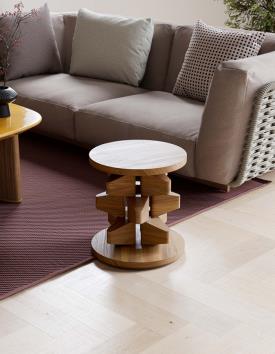 Conçue par Konstantin Grcic, la collection Kari propose deux tables d'appoint très polyvalentes qui peuvent être combinées de multiples façons. Si les deux tables partagent un plateau circulaire, leurs piètements explorent deux géométries distinctes : le cylindre et la pyramide.