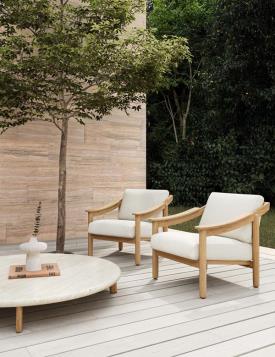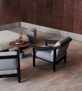 Kettal fait revivre la collection Loden. Conçu à l'origine pour Gavina en 1961, Loden est une série comprenant un fauteuil et un canapé avec une structure en bois laqué composé de quatre pieds cylindriques et une assise inclinée, également en bois, avec des accoudoirs incurvés dont le design est similaire au profil des accoudoirs des chaises Carimate.