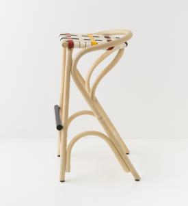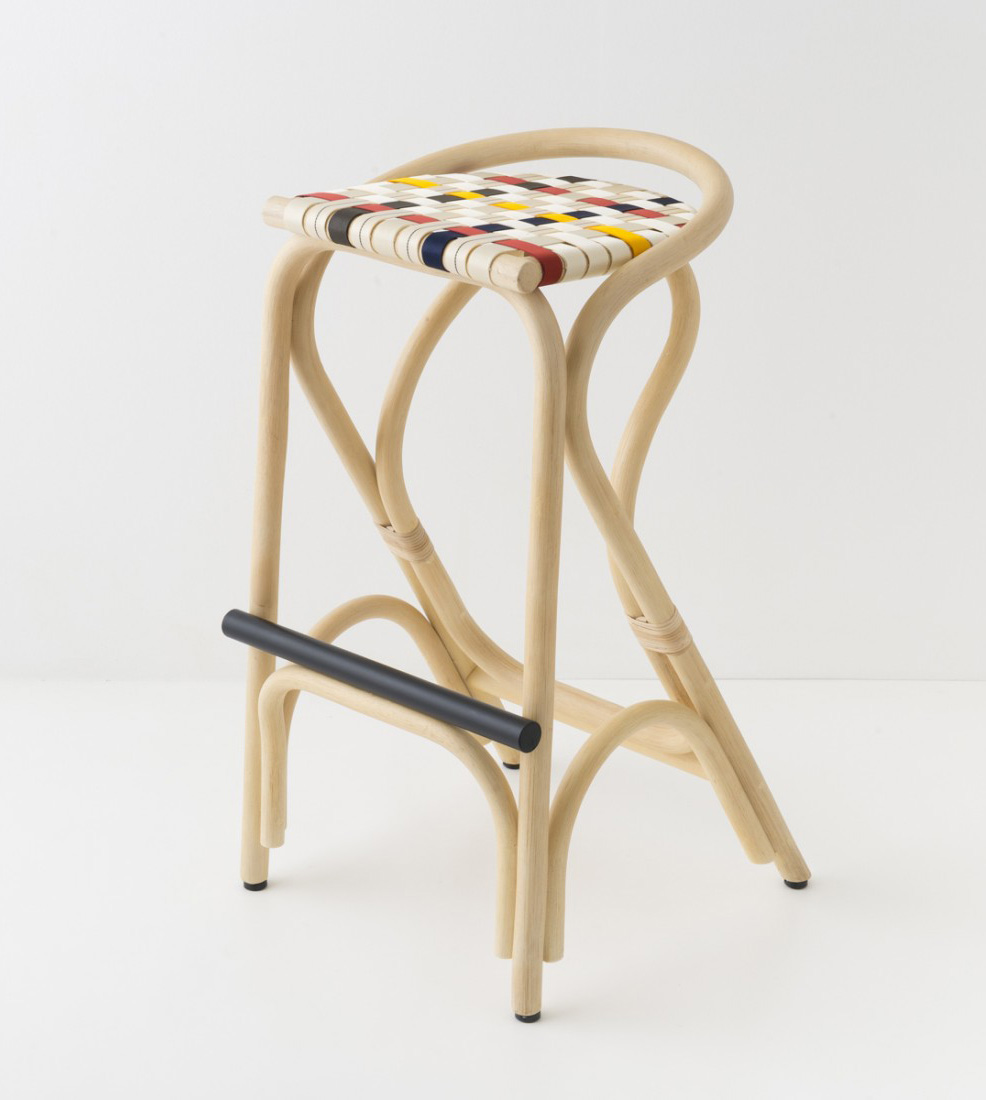 Aurélien Veyrat et Lauriane Beaunier se sont fait plaisir à dessiner le tabouret de bar en rotin VIRAGE LARGE, en exploitant au maximum les possibilités de cintrage de la canne de rotin. En jouant sur les arcades et les courbes d'un seul tenant, c'est une ligne dynamique et toute en légèreté qui se dégage du tabouret. Le choix d'un sanglage en matière synthétique, au départ un choix technique de robustesse, renforce le côté contemporain du design.
