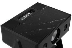 La Boite Concept Design. Samuel Accoceberry Dimensions : l 49 x h 47 x p 35 cm Le Cube Marbre incarne la rencontre parfaite entre la haute-fidélité et le design d’exception. Véritable objet acoustique, cette enceinte connectée combine le savoir-faire technologique de La Boite concept à l’élégance intemporelle d’une finition marbre, unique pour une enceinte. Conçu pour offrir une expérience d’écoute exceptionnelle, le Cube Marbre diffuse un son large et précis, fidèle à l’émotion de l’enregistrement original. Sa conception au format bout de canapé, avec ses pieds en bois massif et son plateau en marbre, assurent à la fois stabilité, densité et une acoustique maîtrisée. Pensé pour s’intégrer harmonieusement dans un intérieur contemporain, le Cube Marbre affirme une présence à la fois discrète et sophistiquée. Chaque détail témoigne de l’exigence artisanale de La Boite concept : des matériaux nobles, une finition soignée et une conception durable, au service d’une écoute haute-fidélité sans compromis. Fabriqué en Europe, le Cube Marbre s’adresse aux mélomanes qui recherchent une enceinte connectée aussi performante qu’élégante. Puissance Puissance amplification RMS sous 8 Omhs: 100 W Puissance totale: 200 W Niveau sonore perçu en dB à 1M: 93 dB Surface de sonorisation maximale recommandée: 150 m2 Puissance totale : 3 canaux qui totalisent 200 Watts. Puissance hifi RMS sous 8 ohms à 0,1% de THD : 100 watts (Class D, DSP, 21,1x50 watts + 2x25 watts). Hauts-Parleurs 2 x Larges bandes arrière (Brevet Wide Sound 2.0®) + déflecteur interne 1 x Médium-Woofer double bass-reflex membrane aluminium 2 x Évents aluminium (Bass reflex) Connectiques La gamme CUBE est adaptée à toutes vos sources. Une entrée mini-jack (3,5mm) est située sur le sous-main du Cube à proximité des boutons de contrôle. Bluetooth® 4.0 Codec Apt-X intégré. Sous le Cube (au dessus de l’étagère) figurent des entrées qui permettent de relier des appareils, une entrée analogique RCA, une entrée numérique optique toslink (DAC 24 bits 192Khz) pour relier platine, CD ou Box et TV, sans latence entre la voix et l’image.
