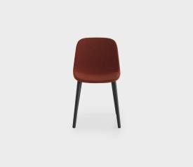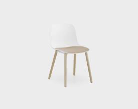 Coque en polypropylène ou revêtue en tissu avec galette en polypropylène, bois ou tissu intégrée dans la coque facilement amovible et remplaçable. Disponible aussi une assise entièrement revêtue sans la galette amovible. Base avec 4 pieds en bois massif en plusieurs finitions. Patins en nylon avec feutre. Disponible aussi un tabouret empilable en deux hauteurs fixes.