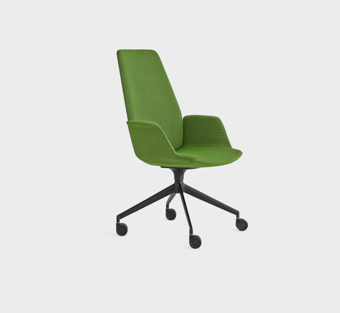 Lapalma Design. Francesco Rota, 2020 - Piètement fi xe avec roulettes Dimensions : l 66 x h 103 x p 60 cm Chaise avec piétement en aluminium microbillé ou laqué epoxy avec roulettes auto-bloquantes. Assise et dossier avec une structure en métal et polyuréthane ignifugé revêtu de tissu, eco-peau ou peau. Disponible aussi avec le mécanisme de bascule. fauteuil pivotant