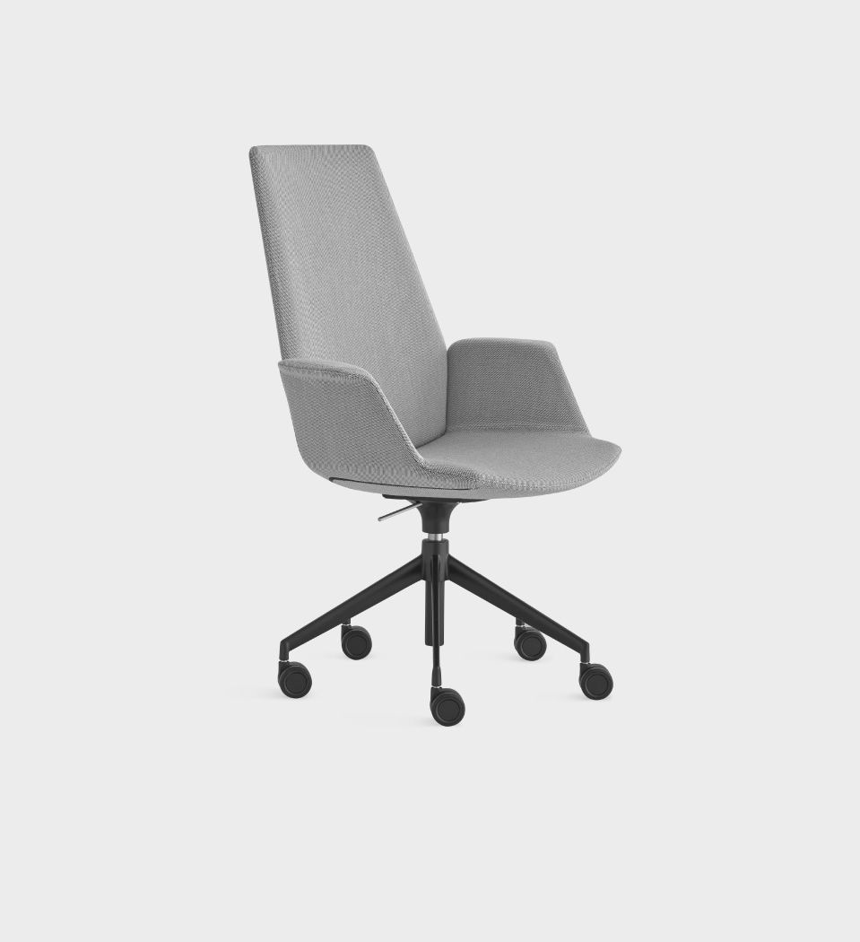 Un dossier haut, des accoudoirs et une base sur roulettes font de cette chaise UNO l'idéal pour combiner autorité et style contemporain.