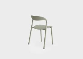 Chaise empilable avec structure en acier peint par poudrage, dossier et assise en polypropylène de différentes couleurs. Pieds en nylon avec feutre intégré.