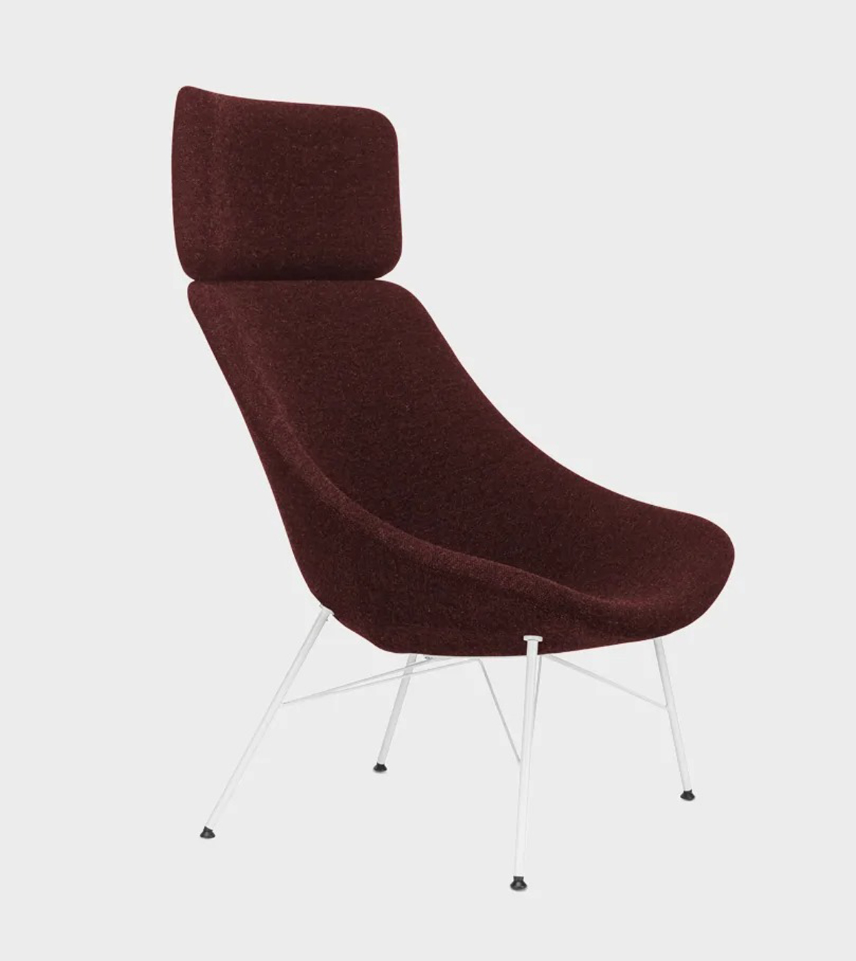Lapalma Design. Hee Welling, 2015 - Fauteuil rembourré piètement en métal avec appui-tête Dimensions : l 78 x h 116 x p 79 cm Les lignes harmonieuses du fauteuil AUKI, qui s'incurvent légèrement sur les côtés pour devenir presque des accoudoirs, vous invitent à vous asseoir. Une pièce maîtresse pour meubler avec style. fauteuil lounge avec appui-tête et avec une structure en métal et mousse de polyuréthane ignifugée revêtue de tissu, peau ou ecopeau. Base avec 4 pieds en acier chromé mat ou laqué époxy. Patins en nylon avec feutre.