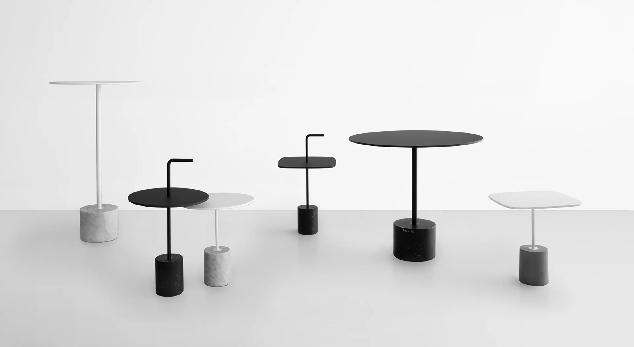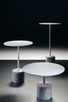 Lapalma Design. Francesco Rota, 2016 - Une base précieuse, en marbre ou en béton, rend la collection de tables basses design JEY vraiment exclusive. C’est désormais une véritable famille, à la fois stable et dynamique. La collection de tables basses JEY, avec ses formes géométriques variées, s’enrichit de deux nouvelles hauteurs et de possibilités de combinaisons infinies. Proposée dans des couleurs essentielles, noir et blanc, et des matériaux qui soulignent son caractère à la fois ancien et contemporain, marbre et ciment, la collection JEY se décline désormais avec une hauteur de 74 cm et un plateau de 70 cm de diamètre, jusqu’à une hauteur de 105 cm avec un plateau façonné de 60 cm. Les versions « classiques » avec une tige tubulaire courbée, y compris dans l’élégante poignée, confèrent à cette petite table-sculpture une présence indispensable. Portante et « volante », elle ajoute du confort à chaque table, fauteuil ou canapé. Et bien sûr, elle se marie parfaitement avec un autre JEY.