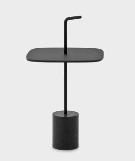 Lapalma Design. Francesco Rota, 2016 - Avec poignée Dimensions : l 40 x h 50/69 x p 40 cm Marbre ou ciment, pour une base importante qui contraste avec la légèreté du plateau. JEY est une table basse au design frais et polyvalent, avec le détail de la poignée qui la rend facile à déplacer. Petite table d’appoint avec base en marbre Carrara blanc, ou Marquinia noir ou en beton. Tige et poignée en acier laqué époxy. Patins en feutre sous la base. Plateaux en plusieurs formes en HPL Fenix® 10 mm avec percement pour la poignée.