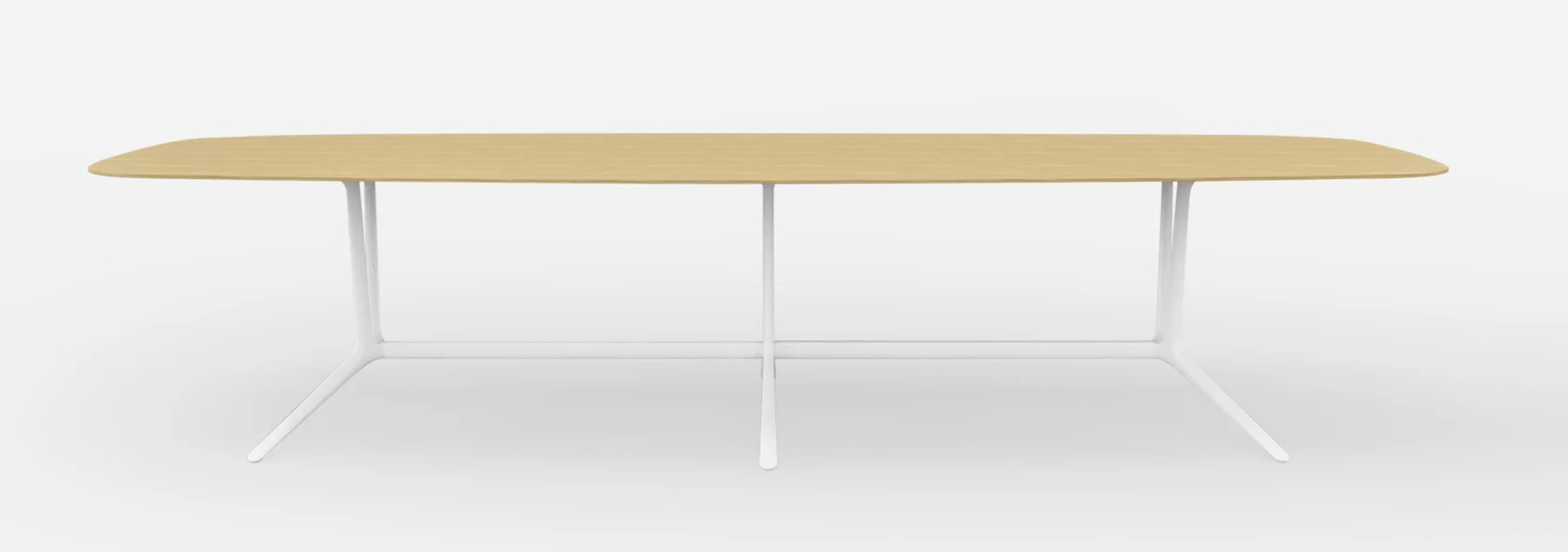 Lapalma Design. Giuseppe Bavuso, 2023 - Table avec pieds et articulations en aluminium moulé sous pression, plateaux en MDF revêtu dans différentes finitions, avec bord et fond laqués. Dimensions : l 360 x h 76 x p 128 cm Parmi les nouveautés présentées au Salon figure le système de tables TRAIL, conçu par Giuseppe Bavuso. Se distinguant par une esthétique placée sous le signe de la légèreté et de l’élégance, où les références aux années 50 rencontrent le style nordique cher à l’entreprise depuis toujours, cette proposition présente une base e aluminium moulé sous pression aux lignes douces, conçue pour former différentes configurations. Elle est prête à accueillir des plateaux ronds qui, en s’allongeant, évoluent vers une délicate forme de tonneau. TRAIL répond aux différents styles et exigences de conception grâce aux différentes finitions proposées pour la base et le plateau, trouvant son emplacement idéal dans les espaces fluides contemporains : à la maison, au bureau et pour les gros marchés. Table avec pieds et articulations en aluminium moulé sous pression. Plaque de fixation pour le plateau en tôle d'acier et longeron en aluminium extrudé. Tous les éléments sont peints par poudrage. Plateaux en MDF revêtus de différentes finitions, avec bord et fond laqués. Des plateaux en gres sont également disponibles. Pieds réglables en nylon.