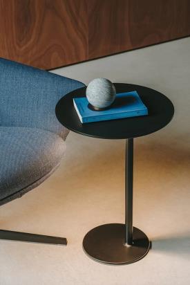 Lapalma Design. Klaus Nolting, 2024 - LYT se présente comme un plateau polyvalent qui s’intègre aisément avec des fauteuils et des canapés, ajoutant ainsi praticité et style à divers contextes, qu’il s’agisse de la cafétéria d’un hôtel, du lounge d’un aéroport ou du salon d’une maison. L'unicité d'un objet est la richesse de ses fonctions. Et la nouvelle table de Klaus Nolting, créée pour Lapalma, combine trois utilisations dans un design linéaire, élégant et contemporain. Mettant en valeur le pied décentré, LYT est un plateau polyvalent qui se joint facilement aux fauteuils et aux canapés, et ajoute praticité et style à différents environnements, de la cafétéria d'un hôtel au salon d'un aéroport, au salon d'une maison. De plus, LYT est également un point de charge sans fil pour smartphones et tablettes intégré dans le plateau et alimenté par câble. Et grâce à la lumière LED discrètement insérée sous la surface du plateau, avec alimentation par batterie intégrée, LYT se transforme en une lumière douce et réglable pour la zone de couchage. Également surprenant dans la richesse de ses variantes, LYT est disponible avec un plateau en noyer Canaletto, chêne blanchi ou noir à pores ouverts, puis en stratifié blanc, noir et laqué dans différentes couleurs.
