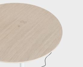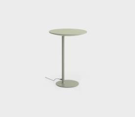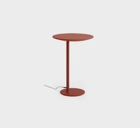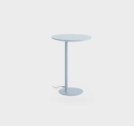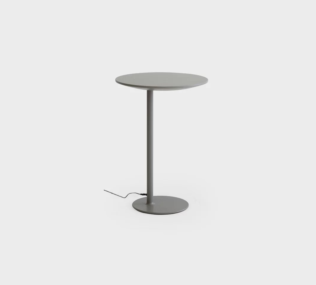 Table lumineuse avec éclairage LED dimmable et bloc d'alimentation avec câble. Base et colonne en métal peint par poudrage dans différentes couleurs. Plateau disponible en différentes finitions avec recharge sans fil. Base au sol avec feutre.