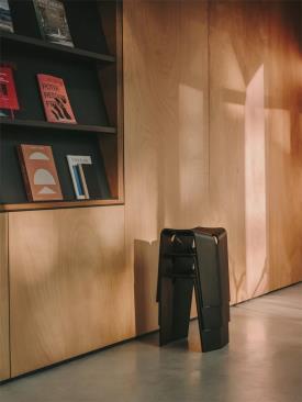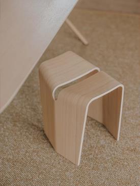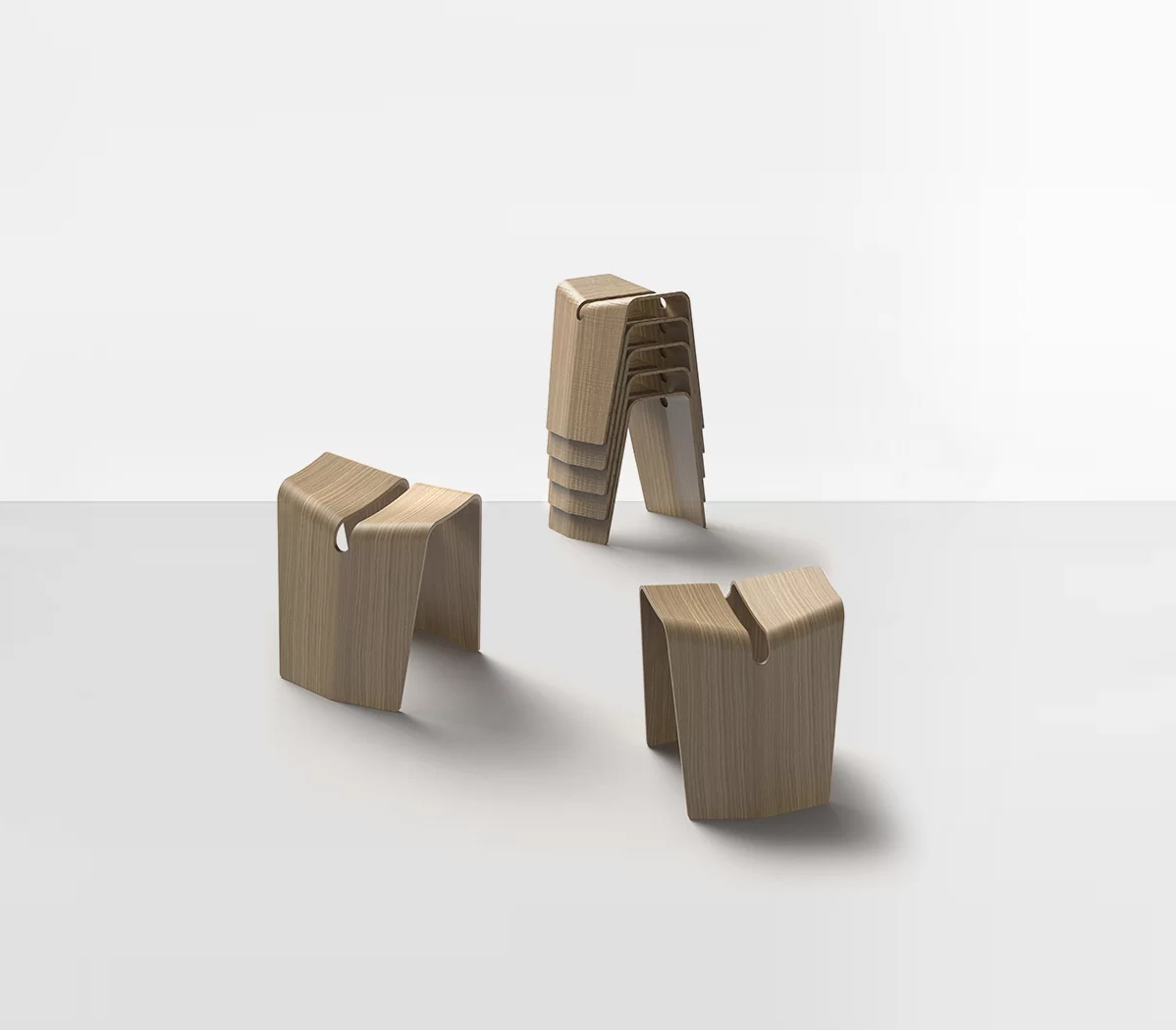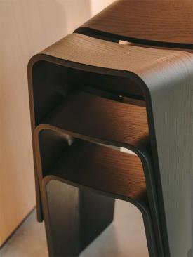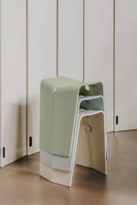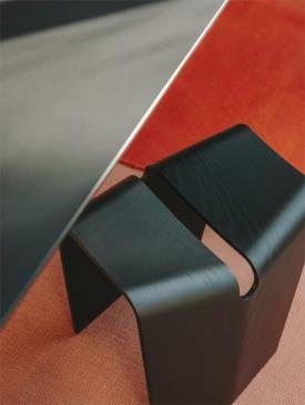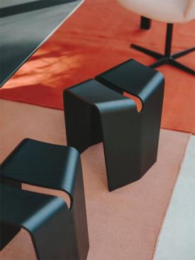 Lapalma Design. Mario Ferrarini, 2023 - S’inspirant de l’art ancien de l’origami Lorsque des objets naissent en jouant, ils ont toujours quelque chose en plus. Une fraîcheur, une spontanéité, ce petit quelque chose. En jouant avec une feuille de papier, en la pliant selon les principes de l'origami, Mario Ferrarini a créé un tabouret d'une originalité et d'une polyvalence extrêmes, qui élargit élégamment la collection Lapalma. KAMI, qui signifie "feuille de papier" en japonais, est une forme de pure séduction qui allie fantaisie et fonctionnalité, douceur, résistance et confort. La matière première est le contreplaqué qui suit docilement les lignes du dessin et sa réalisation tridimensionnelle. L'ouverture centrale qui, lors du moulage, permet le pliage et le contre-pliage de l'assise et des pieds, devient une prise confortable et souligne le profil accueillant du "berceau". Facilement empilable, KAMI nous accompagne partout, comme un carnet où noter chaque jour des moments de détente et de créativité.