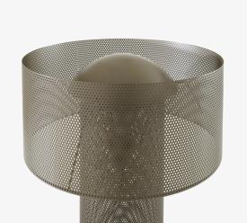 Asola est un clin d'oeil aux années 70-80 tant par le matériau employé, l'acier perforé et sa couleur blanche que par sa forme stylisée de champignon qui évoque des lampes emblématiques de cette période, telles par exemple la lampe Nesso dessinée en 1967 par Giancarlo Mattioli ou la lampe Shogun de Mario Botta dessinée en 1986 (Artemide). - Lampe à poser avec mât et abat-jour constitués de deux cylindres d'acier perforé. La partie supérieure du cylindre mât présente une coupole anti éblouissement en acier repoussé. Finition laqué Epoxy blanc ou vert bronze mat. Câble électrique blanc. Interrupteur à main. Equipée d'une ampoule Eco halogène 57W E27 standard (Classic A). Pavillon laqué blanc (Ø 12 cm - H 3 cm). Livrée avec une ampoule Eco halogène 116W E27 standard (classic A). La partie supérieure du cylindre mât présente une coupole anti éblouissement en acier repoussé. Finition laqué Epoxy blanc ou vert bronze mat. Câble électrique PVC blanc. Interrupteur/variateur à pied blanc. Equipée d'une ampoule LED 14W E27 2700K 1521 Lm dimmable. La lampe à poser Asola est un clin d'oeil aux années 70-80 tant par le matériau employé, l'acier perforé et sa couleur blanche que par sa forme stylisée de champignon qui évoque des lampes emblématiques de cette période, telles par exemple la lampe Nesso dessinée en 1967 par Giancarlo Mattioli ou la lampe Shogun de Mario Botta dessinée en 1986 (Artemide).