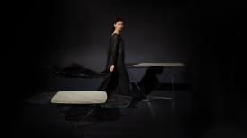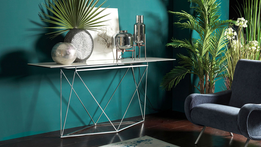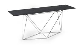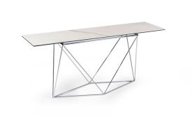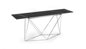 Design. A. Casati Dimensions : l 160/180/200/220 x h 75 x p 45/50 cm console avec plateau en céramique et en verre. base en acier laquée ou traite au bain galvanique