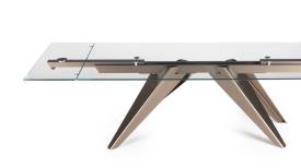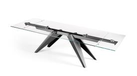 Naos Design A. Casati Dimensions : l 180/.../300 x h 75 x p 100/110 cm Table de repas extensible avec plateau et allonges en verre. base et rails en métal laque’. équipée d’un mécanisme breveté très simple d’utilisation qui permet aux allonges de se déployer et de prolonger la surface de 80 cm. disponible aussi avec plateaux en céramique.