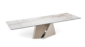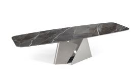 Naos Design A. Casati Dimensions : l 180/.../300 x h 75 x p 100/110 cm Table de repas extensible avec plateau et allonges en verre. base et rails en métal laque’. équipée d’un mécanisme breveté très simple d’utilisation qui permet aux allonges de se déployer et de prolonger la surface de 80 cm. disponible aussi avec plateaux en céramique.