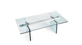 Naos Design Naos Dimensions : l 180/.../300 x h 75 x p 100 cm Table de repas extensible avec plateau, rallonges et en pieds verre. Un mécanisme en aluminium laqué très facile permet aux rallonges de s’étendre et de prolonger la surface de cm 80. Disponible aussi avec plateaux en céramique. table repas extensible