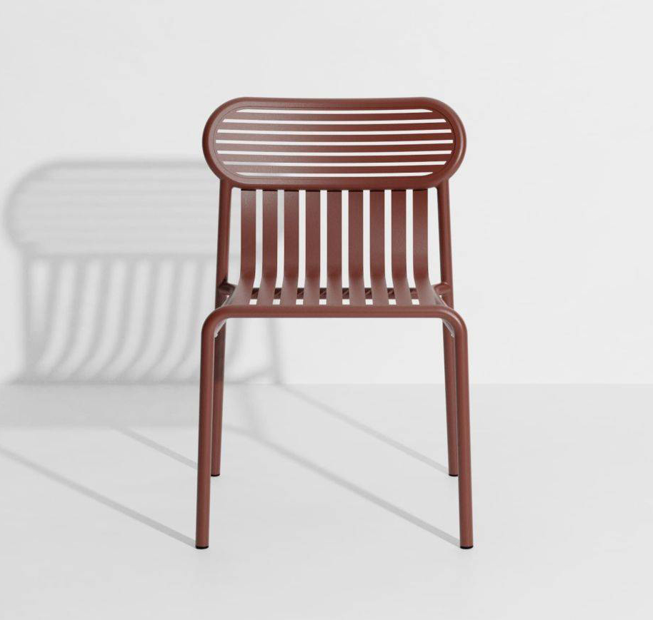 Cette chaise de jardin de la collection WEEK-END du Studio BRICHETZIEGLER mêle esthétisme et praticité. La forme ovale et cernée des assises dessine les dossiers et devient un signe graphique.