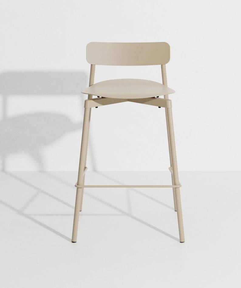 Résistant et léger, le tabouret de bar FROMME en aluminium offre un confort parfait grâce à des amortisseurs placés sous le siège. La finition en peinture poudre mate grainée, résistante à l'eau aux UV, assure une durabilité optimale et un usage intérieur et extérieur.