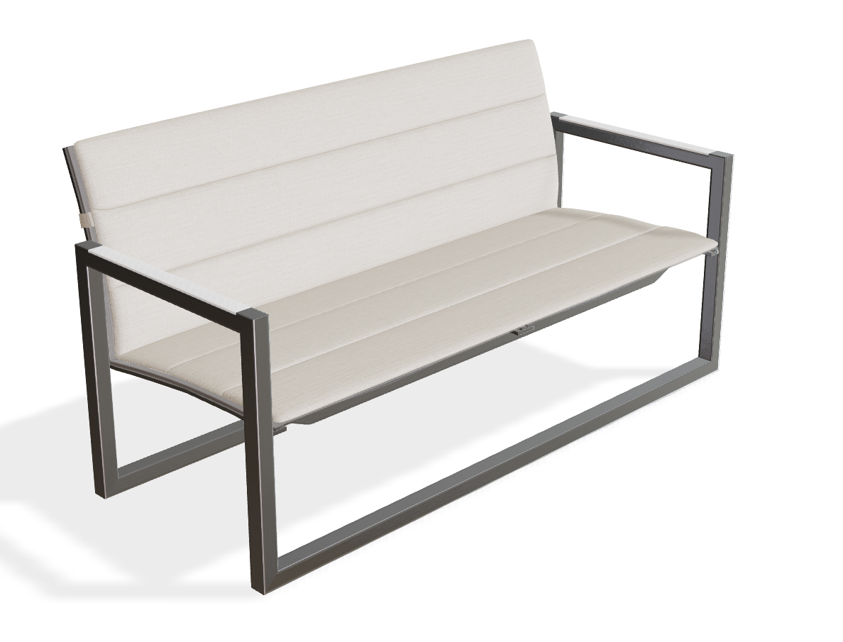 Royal Botania Design. Kris Van Puyvelde Dimensions : l 148 x h 75 x p 64,5 cm Ninix allie rigueur minimaliste et ingénierie précise. Ses lignes épurées et ses matériaux de qualité soulignent une esthétique maîtrisée. Les détails comme les accoudoirs intégrés, la toile Batyline tendue ou les roulettes discrètes renforcent sa fonctionnalité sans superflu. banc extérieur outdoor
