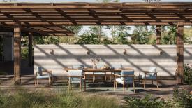 Royal Botania Design. Kris van Puyvelde Dimensions : l 71,5 x h 61,5 x p 73 cm La collection Mambo reflète une élégance décontractée à l’esprit bohème. La chaise Mambo et la chaise Low Dining / Relax reposent sur des structures en teck massif, avec des coussins généreux intégrés de manière invisible — pour un confort enveloppant et une esthétique fluide. fauteuil extérieur outdoor