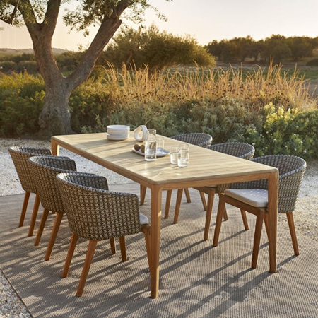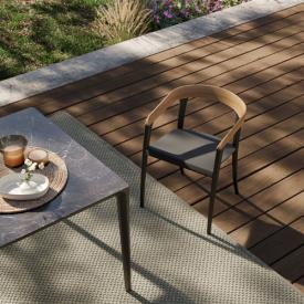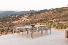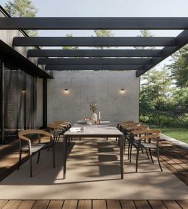 Royal Botania Design. Kris Van Puyvelde Dimensions : l 75/.../300 x h x p 75/90/100/150 cm La collection U-Nite allie harmonieusement design architectural et esthétique chaleureuse, offrant une variété de cadres en teck ou en aluminium thermolaqué associés à des plateaux en céramique flottants. Les plateaux s'intègrent parfaitement dans le cadre grâce à leur design angulaire, créant un look élégant et raffiné. Disponible en plusieurs tailles et formes, les lignes épurées et le style raffiné de cette collection en font un choix exceptionnel pour les espaces de restauration extérieurs contemporains. table extérieur outdoor