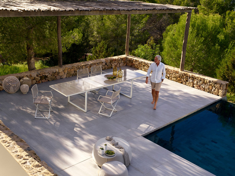 La généreuse table Nox est ni plus ni moins un véritable chef d'oeuvre. Elle se caractérise par un splendide plateau en lave émaillée à la main, offrant un léger effet craquelé. Chaque plateau est unique en raison des imperfections naturelles de la pierre de lave vésuvienne de plus de 400 ans. La couche émaillée protège la pierre et lui permet de résister à l'eau, à la chaleur, au gel, aux UV et aux taches. Le plateau de la table Nox repose sur une structure délicate mais robuste en acier inoxydable révêtu d'une laque poudrée. D'où cette impression de légèreté et d'élégance qui s'en dégage malgré le lourd plateau de pierre. Sa longueur généreuse – 3,60 mètres – permet aisément d'accueillir jusqu'à 14 convives.